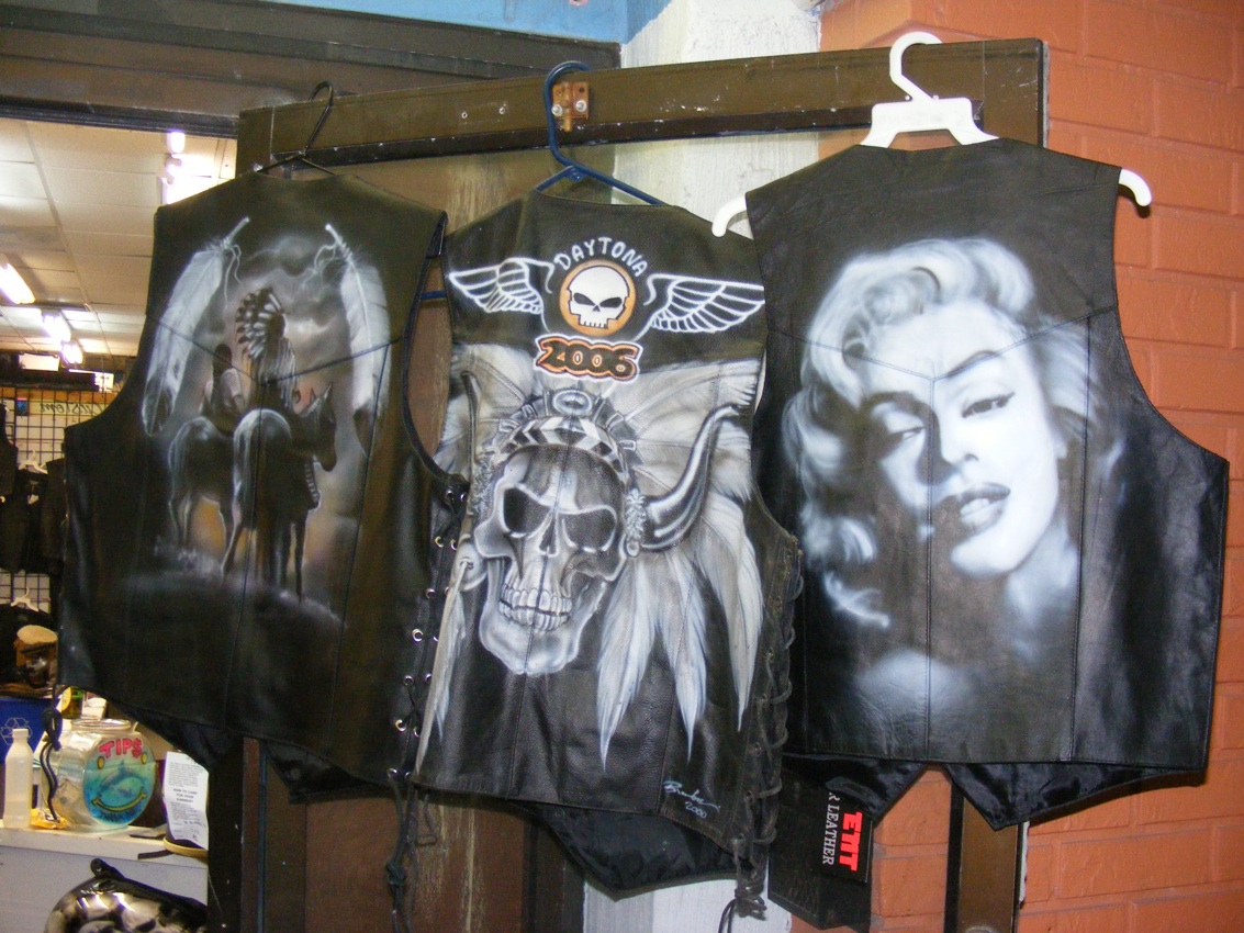 Jester Custom took over the airbrush t-shirt shop on Main Street Daytona Beach. We painted Leathers, t-shirts, bikes and bodies.