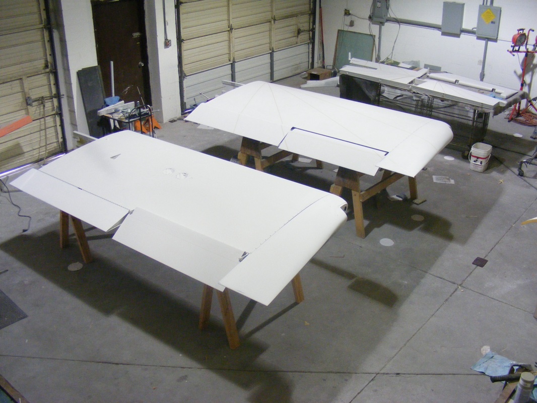 The wings assembled in the shop in white primer