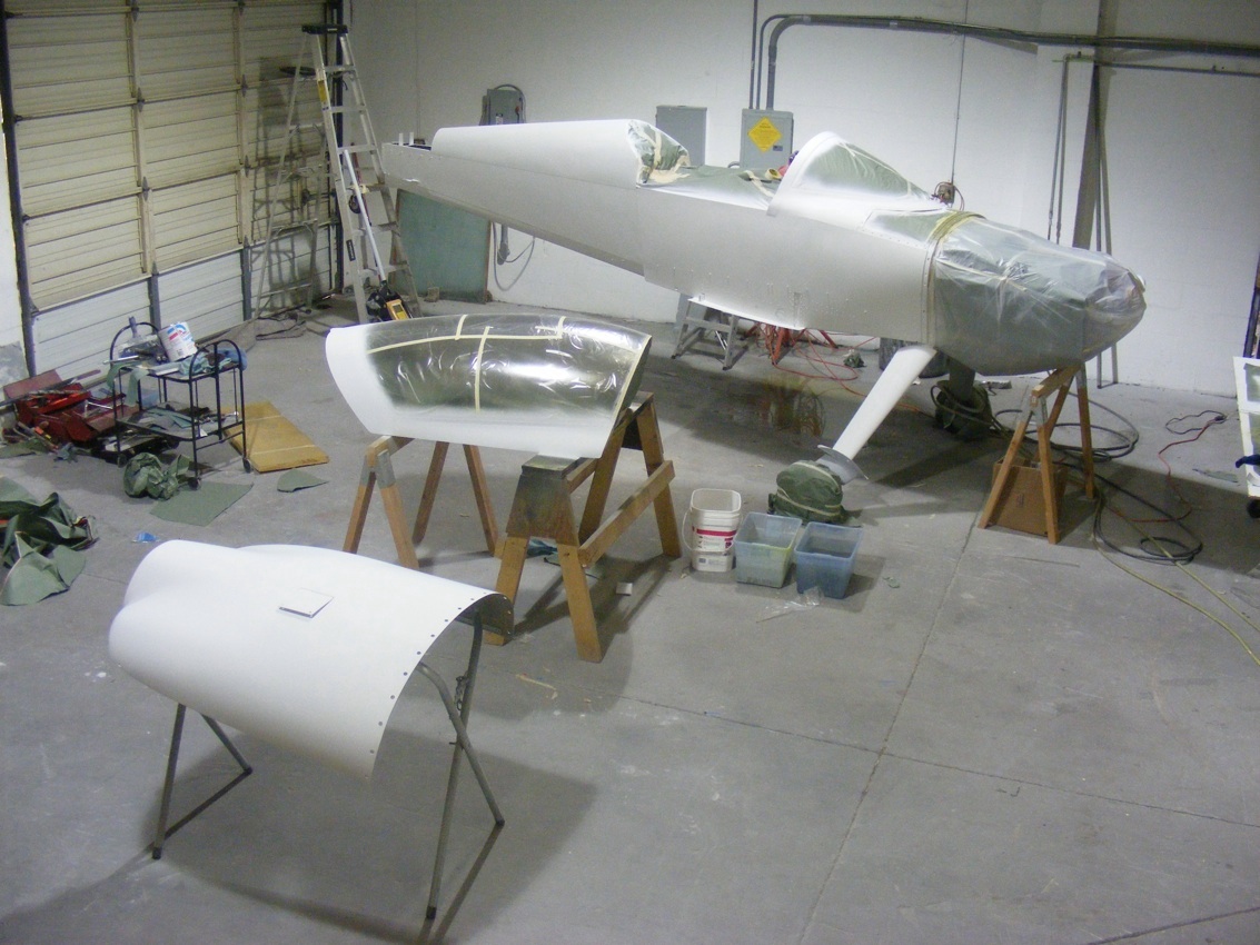 Annodizes bare aluminium fusilage getting some white primer