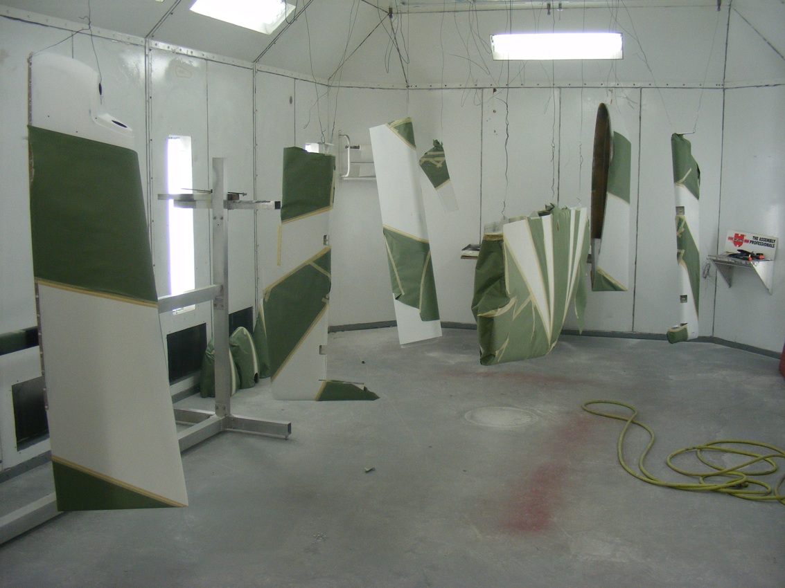 Parts in the booth masked and ready for color