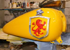 Traditional Welsh family crest personalizes this harley for it's owner