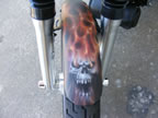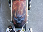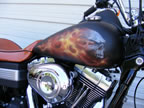 The owner of this bike wanted real fire flames and skulls but wanted to keep the original flat finish of the bike.