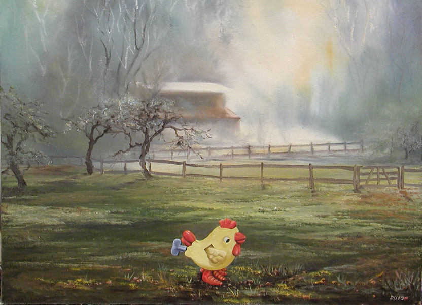 title: farmyard or 'we only eat...' 24" x 32" oil on canvas sold |